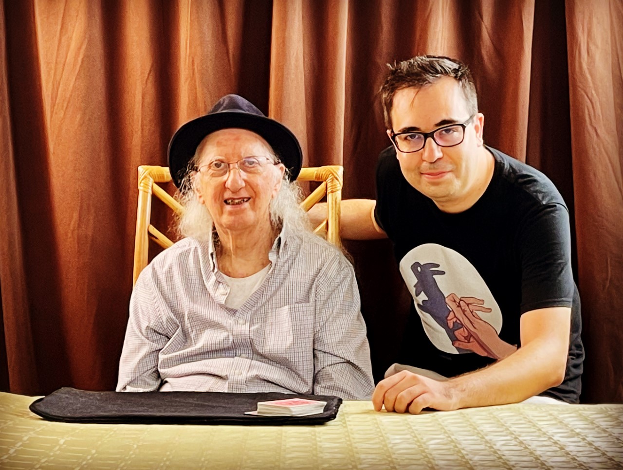 Miguel Herrero Herrero en San Fernando (Cádiz) con el gran ilusionista Juan Tamariz, uno de sus maestros, durante el rodaje.